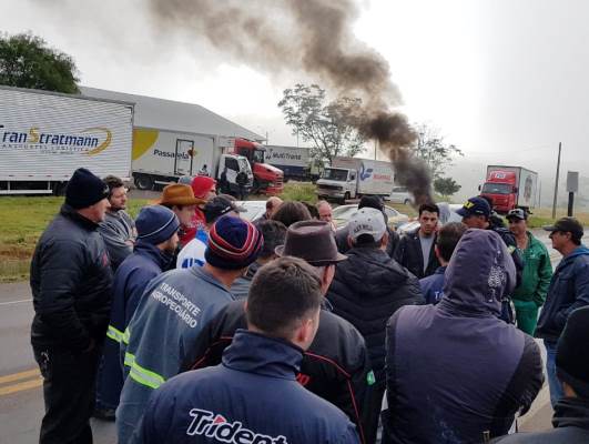 Os caminhoneiros estão mobilizados em Joaçaba, em uma[...]