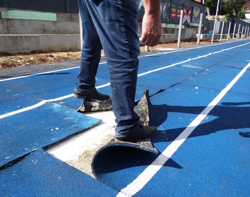 A situação precária do piso emborrachado da[...]